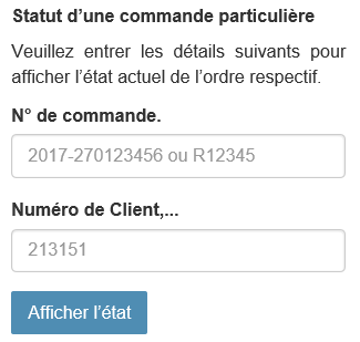 Alors vous avez besoin du numéro d’ordre et votre numéro de client. Vous les trouvez également dans votre confirmation d’ordre.