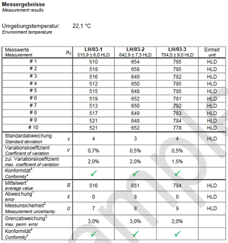 Nous vous offrons un étalonnage d'usine pour les duromètres Leeb 400 - 800 HLD dans notre laboratoire ultra-moderne avec un temps de passage (4 jour ouvrables environ).