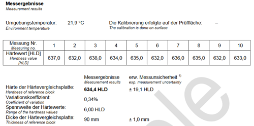 Suivant vous voyez de façon exemplaire un extrait de l'admission de la valeur. Vous pouvez regarder le certificat d'étalonnage d'exemple ici.