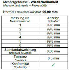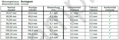 Suivant vous voyez de façon exemplaire un extrait de l'admission de la valeur. Vous pouvez regarder de certificat d'étalonnage d'exemple ici.